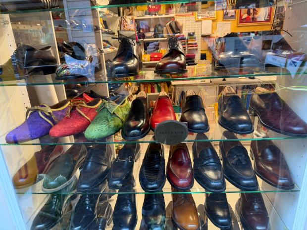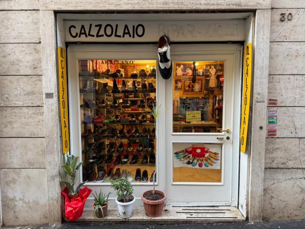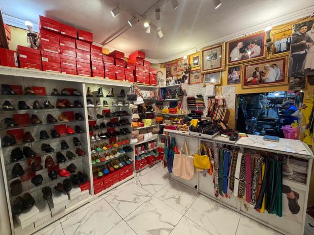 "Cheguei à Itália em 1990 e abri esta loja em 1998", explica o nativo de Trujillo, no Peru. Sua região natal é conhecida pela qualidade de seus sapateiros artesanais. Ele começou a trabalhar muito cedo e mostrou um talento extraordinário, e aos 14 anos, já ganhava "o salário de um mestre", em suas palavras. Impulsionado pela crise econômica que atinge seu país, ele decide tentar a sorte do outro lado do mundo, na Itália, onde há uma grande comunidade peruana. Em seu rosto, o sorriso dá lugar à emoção quando ele se lembra de seus primeiros anos em Roma. "Comecei aqui, consertando sapatos nesta oficina", explica ele, apontando para a sala dos fundos. Acima de seu ombro, vemos as ferramentas, os restos de couro e os pares em processo de fabricação espalhados sob os olhares benevolentes das pinturas doVirgem Maria e dePadre Pio.