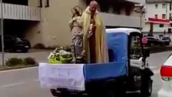 Reportagem localACI DigitalNa Itália, padre leva imagem de Nossa Senhora às ruas e reza o terço com quem sai nas janelas